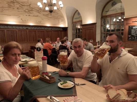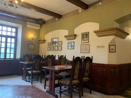 The restaurant is located near Wawel Castle - the residence of Polish kings. There is ... Więcej The restaurant is located near Wawel Castle - the residence of Polish kings. There is always a queue under the restaurant, because the restaurant is very popular, we have repeatedly seen this. The restaurant is always fun, live music plays and there is a festive atmosphere. All the food is very tasty, we ordered schnitzel and sausages, excellent beer.