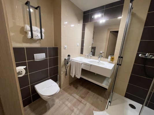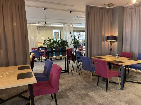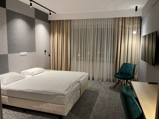 Traveled around Europe with children and a dog. I had to look for an overnight ... Więcej Traveled around Europe with children and a dog. I had to look for an overnight stay in Poland so that the next day I could already be in Germany. On my way was the city of Zielona Gora. We chose a hotel because it provides for a settlement with pets, for us it was important. We were greeted by the administrator, briefly told the conditions of accommodation and breakfast time. Our room was spacious and modern. Quality plumbing, quality materials, excellent bed. We could use the kettle and fridge. I really liked the curtains, they blocked the morning light and we were able to sleep. The breakfast was varied and very tasty. Three types of eggs, sausages, fish, lots of vegetables and fruits and delicious desserts. The hotel has a lot of entertainment for children and adults - bowling, sauna, billiards, gym, children's room. I recommend the hotel not only as a transit, but also as an option for relaxation, as the hotel is surrounded by forest
