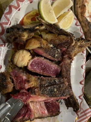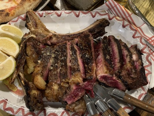 In Pescara, we were passing through, walking along the deserted central streets, we noticed a restaurant in which there was a full boarding. Curiosity got ... Więcej In Pescara, we were passing through, walking along the deserted central streets, we noticed a restaurant in which there was a full boarding. Curiosity got the better of us and we decided to visit it. We managed to book a table for 9 o'clock. Ordered pizza, arrosticini and steak. Everything was incredibly delicious. Pizza and meat were cooked on coals. A very worthy restaurant, unfortunately, there are few of them in Italy.