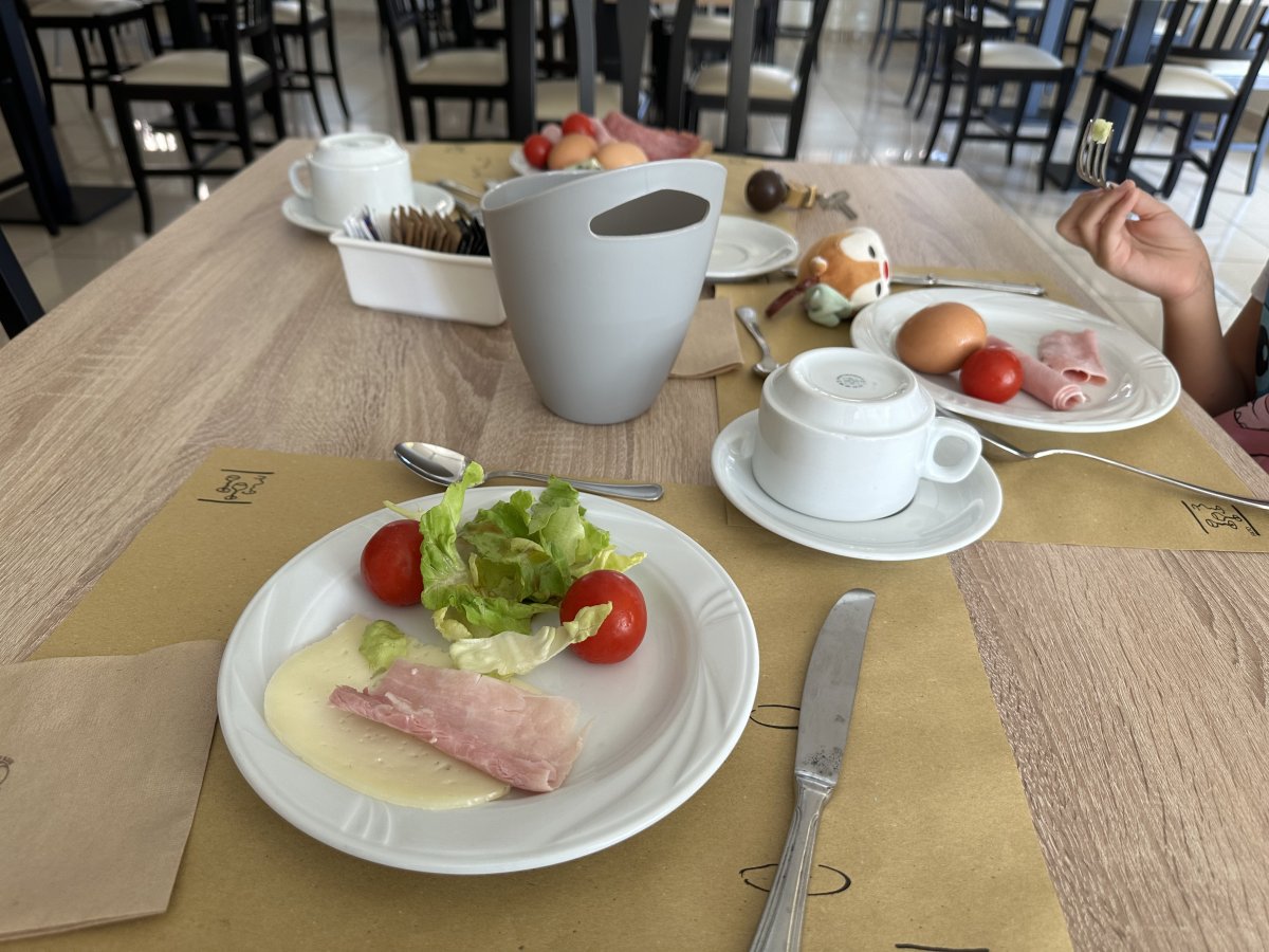 The hotel even more than justifies its 3 stars. The location is excellent - city center, 3 minutes to the beach. There is a train ... Więcej The hotel even more than justifies its 3 stars. The location is excellent - city center, 3 minutes to the beach. There is a train station nearby, but we couldn't hear any trains in our room. There are parking spaces nearby. The hotel provides 2 sun loungers and an umbrella for free on the beach. The room we had for 2 people was small, but we were comfortable. The furniture is not super modern, but clean and tidy. The bathroom is spacious and clean. Breakfast is a buffet, but quite modest. I recommend this hotel if you are passing through.