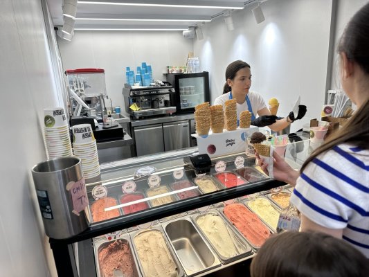 Вибір морозива менше, ніж на сайті, але є цікаве - лосось, помідори, просеко)))), а також багато класичного фруктового та просто солодкого.