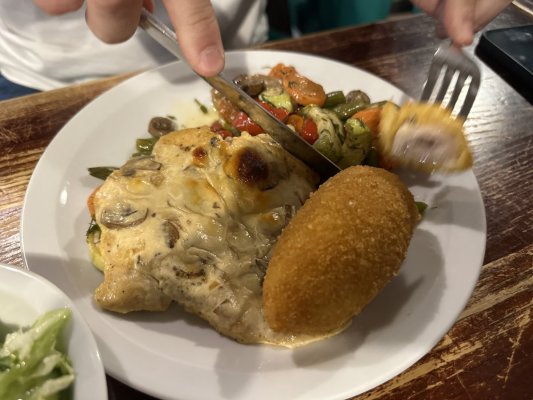 Ну було дуже посередньо, хоча зазвичай смачно. Ребра були наче варені, дуже багато дрібних кісточок ... Więcej Ну було дуже посередньо, хоча зазвичай смачно. Ребра були наче варені, дуже багато дрібних кісточок і мало мʼяса. Хот дог дітям не зайшов, але мені був смачний )