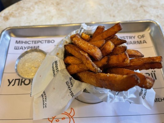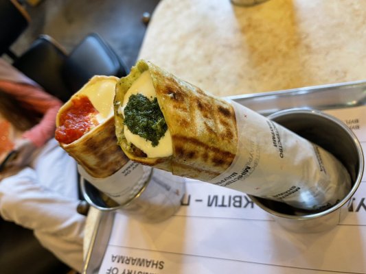 Дуже незвичний формат закладу, але в ньому є своя гарна атмосфера. Ідеальне обслуговування, але сама ... Więcej Дуже незвичний формат закладу, але в ньому є своя гарна атмосфера. Ідеальне обслуговування, але сама шаурма так собі. Можливо це не моє, зайшли заради експерименту )