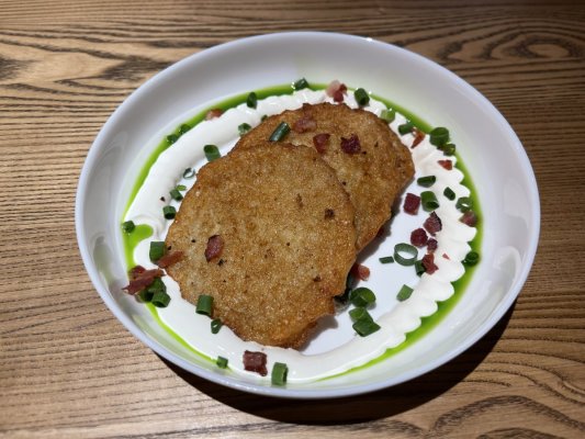Подача драників гарна, на смак непогано, але трошки жирні, а бекон взагалі неможливо було їсти, ... Więcej Подача драників гарна, на смак непогано, але трошки жирні, а бекон взагалі неможливо було їсти, можна зуби зламати. Томям дуже смачний, тут без питань.