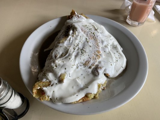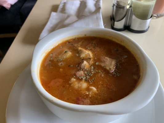 Зашли пообедать в кафе Терасса в Межгорье случайно, были рядом в парикмахерской. Заказали борщ, деруны, картошку с беконом и десерт. Так невкусно я не ела ... Więcej Зашли пообедать в кафе Терасса в Межгорье случайно, были рядом в парикмахерской. Заказали борщ, деруны, картошку с беконом и десерт. Так невкусно я не ела очень давно… деруны были очень жирные и пригоревшие на сковородке, на что официантка почти не отреагировала, только сказала - ну, сковородка такая, такое бывает… не вкусно и не очень приятно…