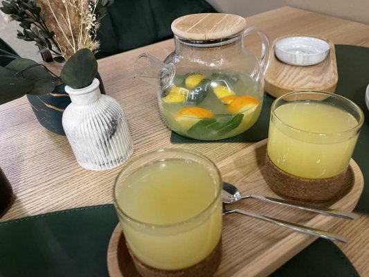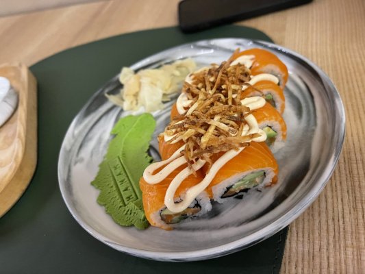 Сьогодні замовили чай та роли. Чай з імбиром, мʼятою, апельсином та лимоном. Неймовірно смачний! Роли вище середнього, хотілося б трохи більше лосося і водорості були жорсткими.