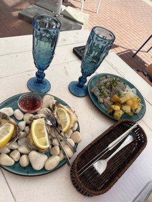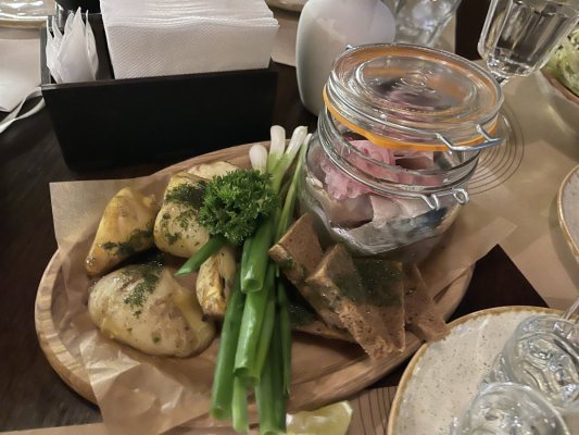 Сьогодні обіду в Анчосній на Софіївській Борщагівці. Світла не було, тому замовляли по скороченому меню. ... Więcej Сьогодні обіду в Анчосній на Софіївській Борщагівці. Світла не було, тому замовляли по скороченому меню. Не дуже складну картоплю з оселедцем та устриці. Все винесли швидко, все було смачно, особливо охолоджене бочкове просеко.