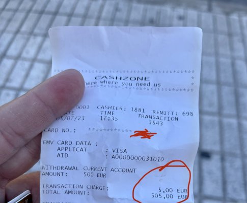 Never withdraw money from these ATMs. I have never seen such impudence and an unrealistically ... Więcej Never withdraw money from these ATMs. I have never seen such impudence and an unrealistically large hidden commission anywhere. The commission was indicated as 5 euros, as a result, 17 were withdrawn, the exchange rate to the dollar was 0.7, instead of 0.9. Withdrawing 500 euros I lost 40 euros. They are scammers