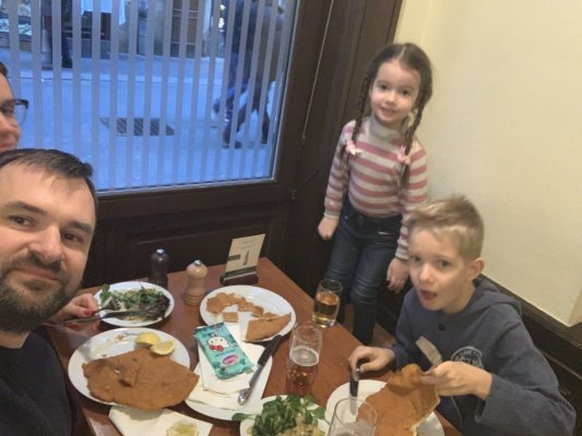 The food was absolutely wonderful, especially potato salad and certainly schnitzel. Service was awesome and ... Więcej The food was absolutely wonderful, especially potato salad and certainly schnitzel. Service was awesome and waiter was very accommodating. They always serves the foods at the right time, after ordering for them, without keeping us waiting and hungry.