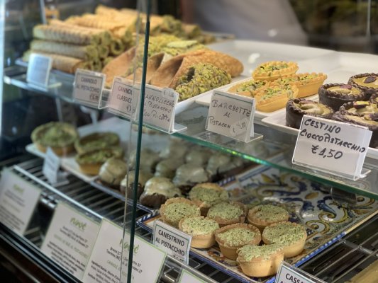 First of all, it is very beautiful here and everything is saturated with the Italian ... Więcej First of all, it is very beautiful here and everything is saturated with the Italian atmosphere. Amazingly beautiful desserts and many branded drinks. The cafe owner treated us to pistachio liqueur. He was very kind and hospitable. The pistachio drink seemed very tasty to us, even tastier than Baileys. But in desserts, we lacked the taste of pistachios, they were very sweet, but even this fact does not make this place less interesting