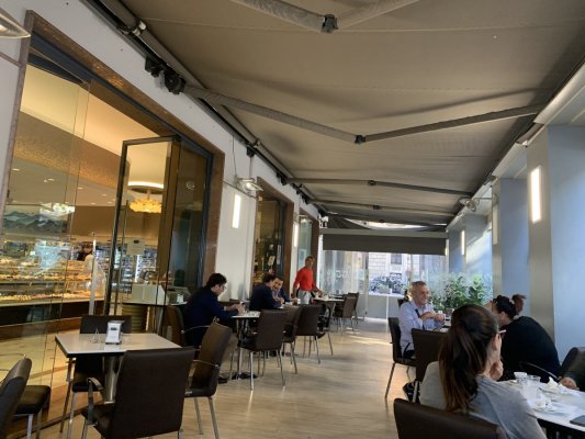 The hotel where we stayed offered us breakfast in this cafe. There were quite a ... Więcej The hotel where we stayed offered us breakfast in this cafe. There were quite a lot of visitors here, which indicates its popularity. Confusing payment, the cashier is in a separate place. Large selection of national desserts. Prices are average. Everything was delicious.