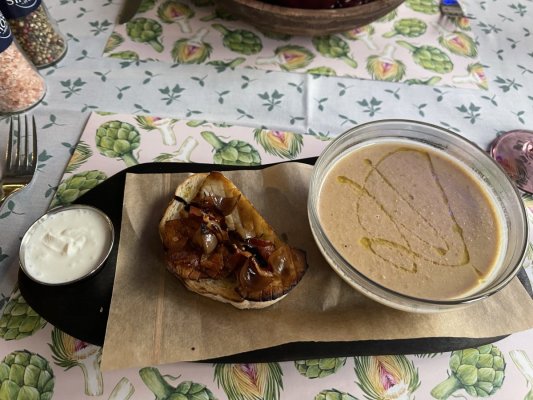 Мені дуже сподобалися перші страви. Велика порція, смачно і дуже цікава подача. Єдине чого мені ... Więcej Мені дуже сподобалися перші страви. Велика порція, смачно і дуже цікава подача. Єдине чого мені не вистачає в цьому закладі, це гостинності. По-перше нас не провели, хоча ми були самі в ресторані, по-друге офіціанти виглядають дуже не задоволеними. Ну то ладно, мабуть ми хочемо забагато уваги для себе ) Загалом досить непогано