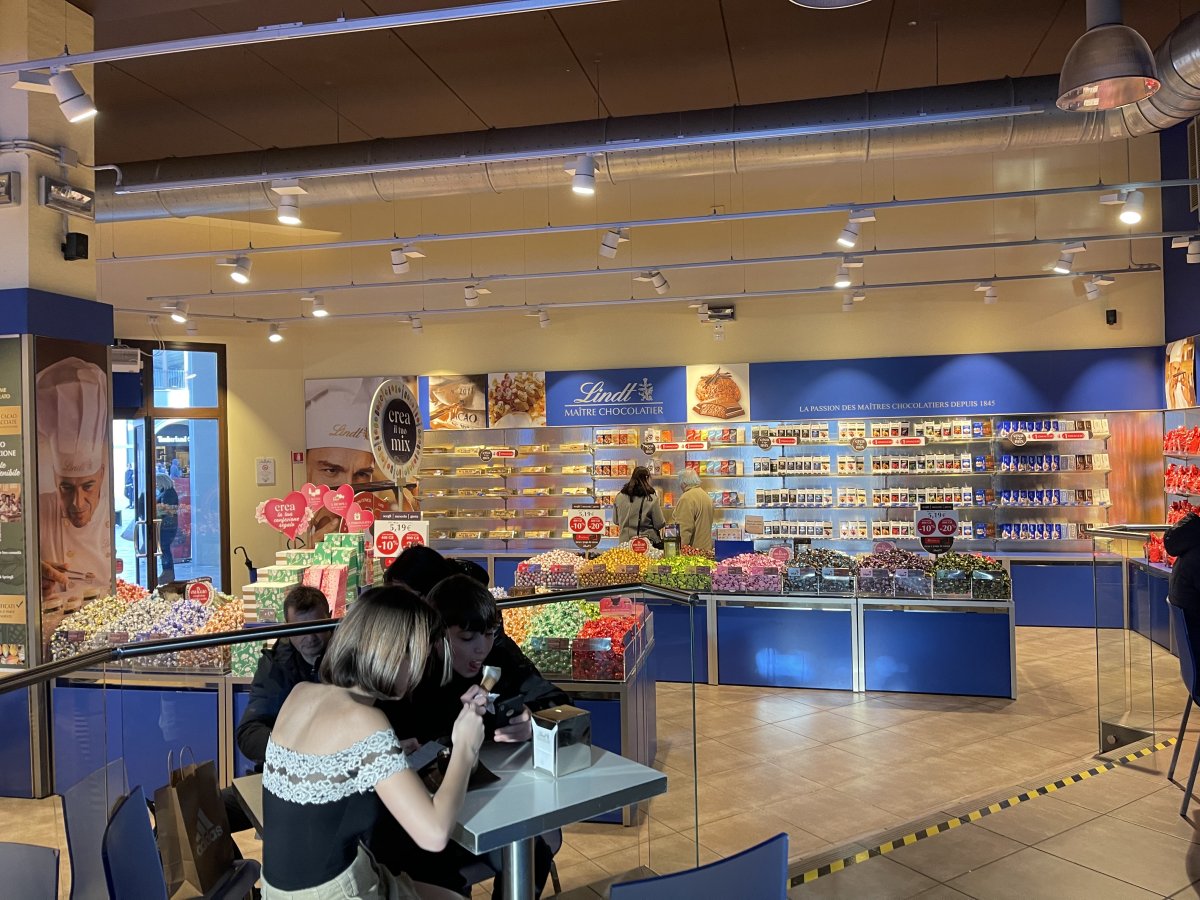 Questa è stata la prima volta che ho visitato un negozio di caramelle Lindt. Così ... Więcej Questa è stata la prima volta che ho visitato un negozio di caramelle Lindt. Così tanti dolci che ho voluto provare tutto. Gelato molto gustoso e caffè molto gustoso.